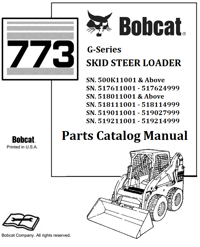 BOBCAT 773 G-Series SKID STEER LOADER PARTS CATALOG MANUAL SN. 500K11001 & Above 517611001 - 517624999 518011001 & Above 518111001 - 518114999 519011001 - 519027999 519211001 - 519214999 Instant Official PDF Download