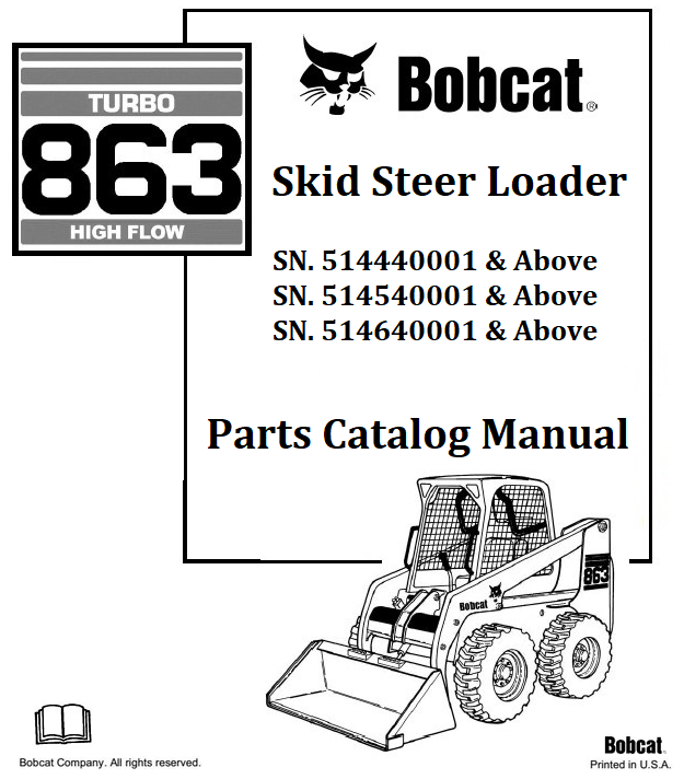 Bobcat 863 Turbo High Flow Skid Steer Loader Parts Catalog Manual SN.514440001 & Above 514540001 & Above 514640001 & Above Instant Official PDF Download