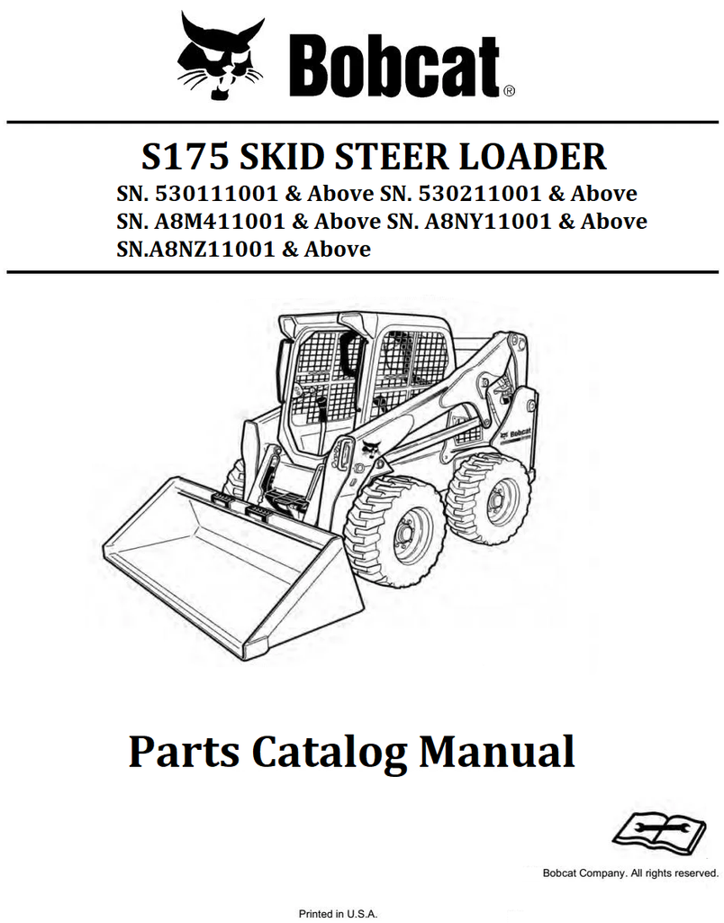BOBCAT S175 SKID STEER LOADER PARTS CATALOG MANUAL SN. 530111001 & Above 530211001 & Above A8M411001 & Above A8NY11001 & Above A8NZ11001 & Above Instant Official PDF Download