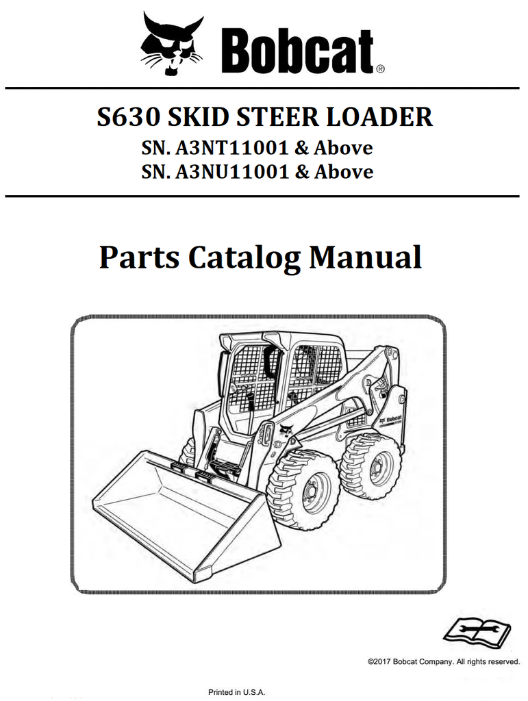 BOBCAT S630 SKID STEER LOADER Parts MANUAL SN.A3NT11001 & Above A3NU11001 & Above Instant Official PDF Download