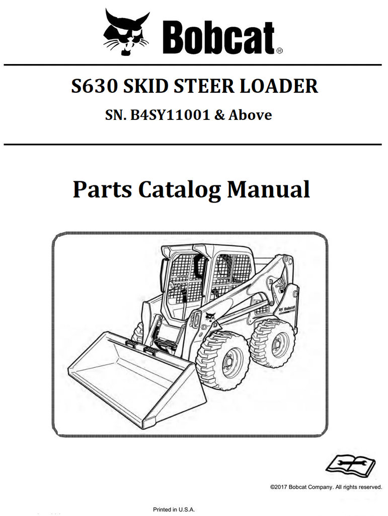 BOBCAT S630 SKID STEER LOADER Parts MANUAL SN. B4SY11001 & Above Instant Official PDF Download