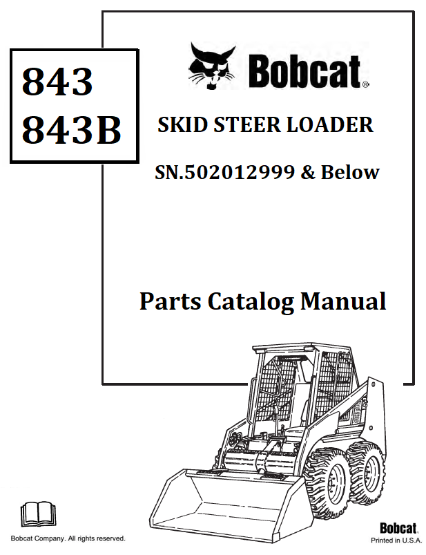BOBCAT 843 843B SKID STEER LOADER PARTS CATALOG MANUAL SN.502012999 & Below Instant Official PDF Download