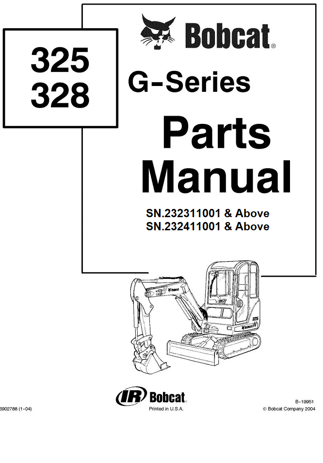 Bobcat 325 328 Excavator (G Series) Parts Catalog Manual SN.232311001 & Above 232411001 & Above Official Instant PDF Download
